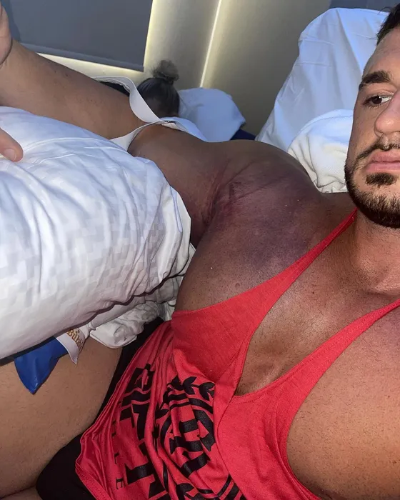 Momentul tulburător în care un culturist își rupe mușchiul pieptului, în timpul unui antrenament dur la sală. Imagini șocante | VIDEO