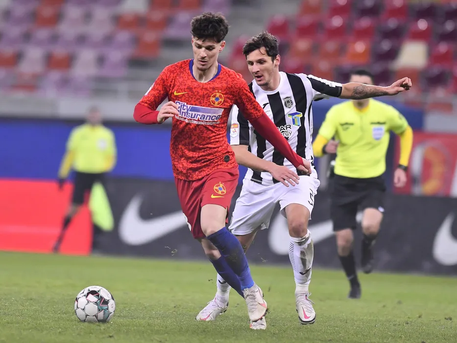 Dennis Man si Ljubjan Crepulja in meciul de fotbal dintre FCSB si Astra Giurgiu, contand pentru Liga 1 Casa Pariurilor, desfasurat fara spectatori pe Arena Nationala din Bucuresti, vineri 15 ianuarie 2021. © FOTO:Razvan Pasarica/SPORT PICTURES
