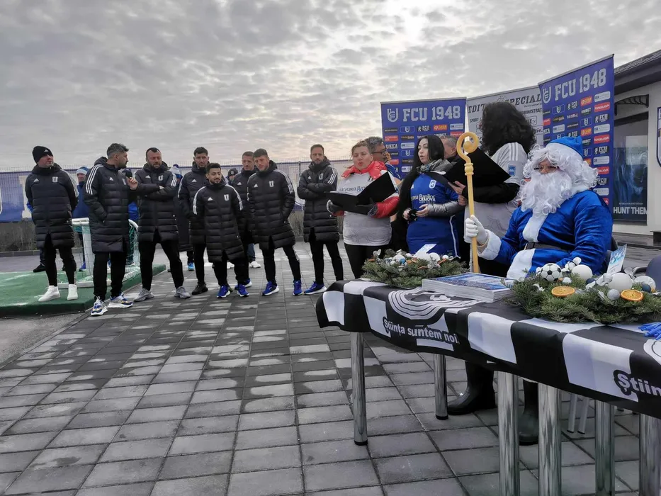 Moș Crăciun, frații Costea, Mihai Dina, Vlad Achim, Dragoș Albu, Radu Negru și Mogoșanu le-au dat cadouri juniorilor lui FCU | SPECIAL