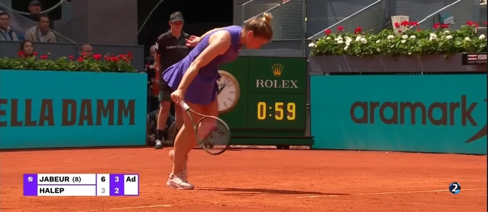 Motivul pentru care Simona Halep a fost penalizată de arbitrul meciului cu Ons Jabeur! Patrick Mouratoglou a înlemnit în lojă | FOTO