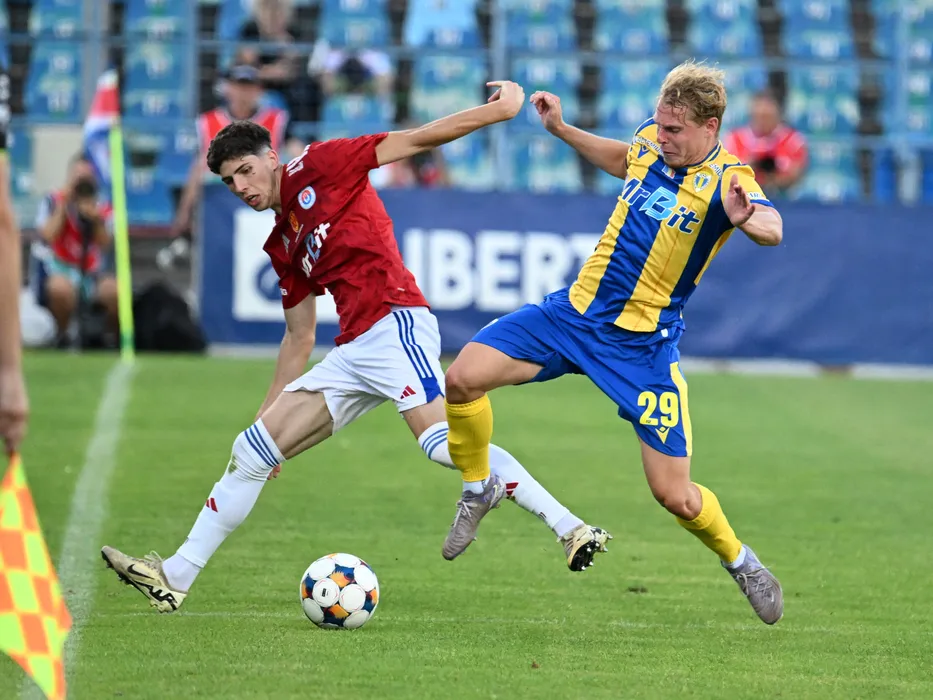 Stefan Daniel Bana si Kilian Ludewig in meciul dintre Otelul Galati si Petrolul Ploiesti, contand pentru Superliga Superbet, desfasurat pe Stadionul Otelul din Galati, duminica 13 iulie 2025. © FOTO:Razvan Pasarica/SPORT PICTURES