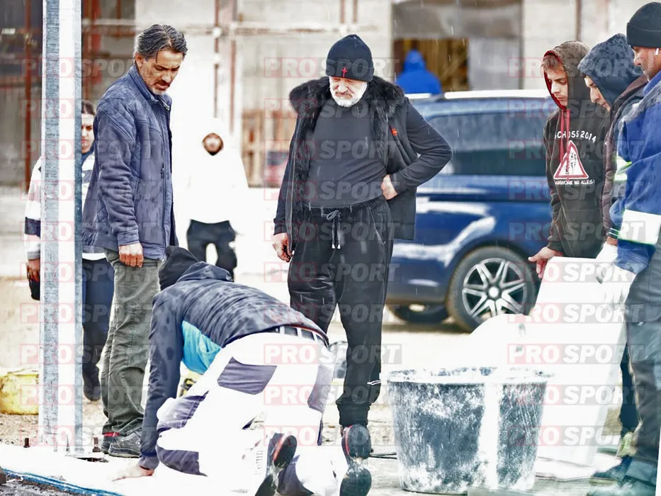 Muncitorii s-au pus în genunchi în fața lui Gigi Becali la biserica în care a băgat peste 10.000.000 de euro. Miliardarul le-a dat indicații și s-a văitat că-l doare spatele. EXCLUSIV