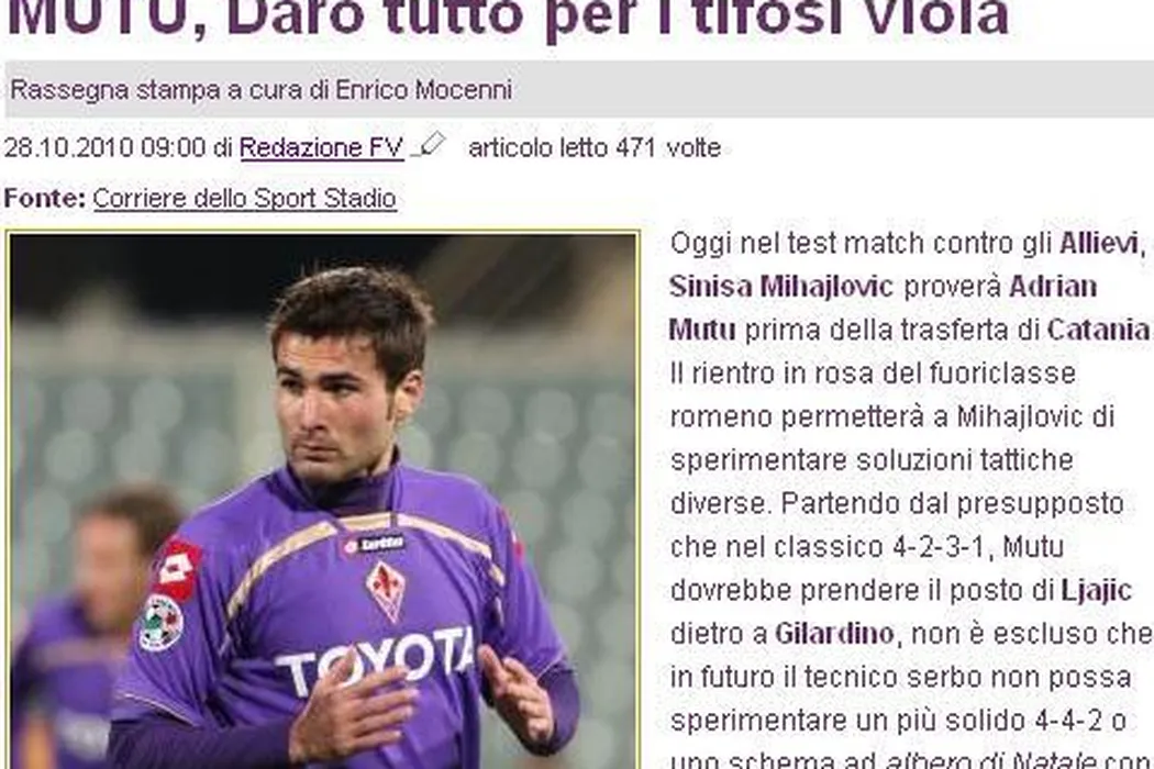 Mutu, anunțat titular la Catania!** „Nu merită să joace, l-aș fi dat afară” Vezi mesajul Briliantului către fanii Fiorentinei