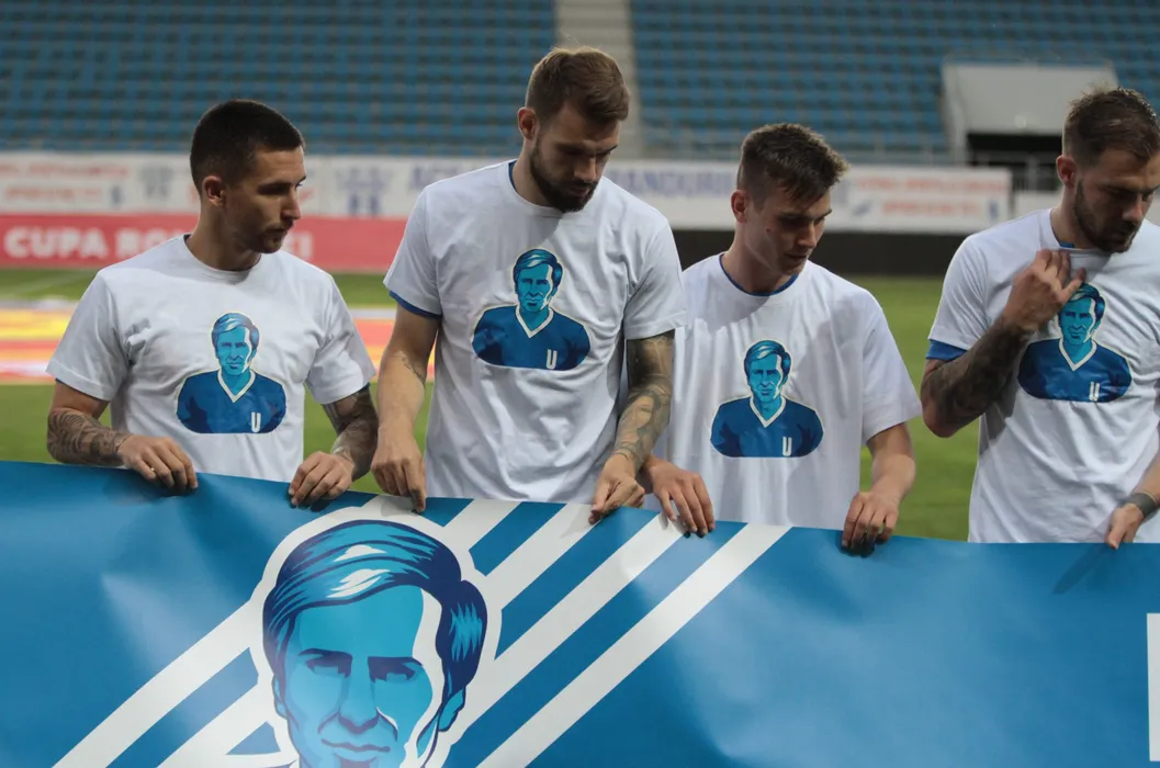 Fotbalistii craioveni la startul meciului in meciul de fotbal dintre Viitorul Pandurii Targu Jiu si Universitatea Craiova, contand pentru Cupa Romaniei, desfasurat pe stadionul Municipal din Târgu Jiu, miercuri 12 mai 2021. © FOTO:Andi Popesu/SPORT PICTURES