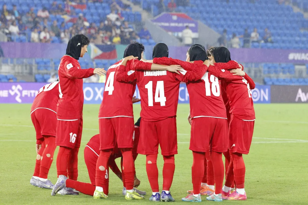 Iranian players huddle before the AFC Women’s Asian Cup Australia 2026 football match between Iran and the Philippines on the Gold Coast on March 8, 2026.,Image: 1081051760, License: Rights-managed, Restrictions: -- IMAGE RESTRICTED TO EDITORIAL USE - STRICTLY NO COMMERCIAL USE --, Model Release: no, Credit line: STR / AFP / Profimedia