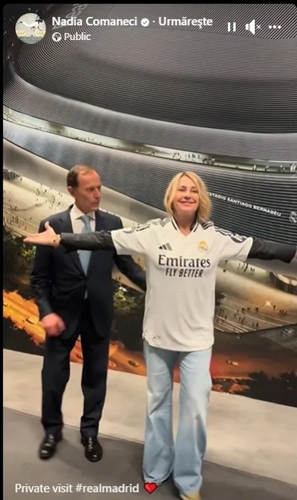 Nadia Comăneci, cadou superb de la Real Madrid! Românca a fost pe Santiago Bernabeu și spaniolii au primit-o ca pe o adevărată zeiță