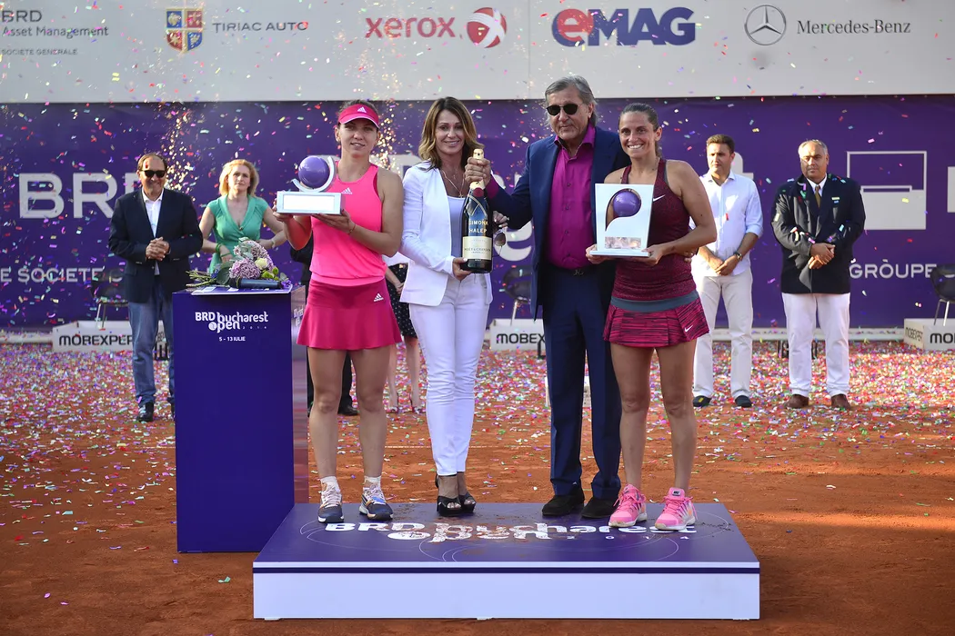 Simona Halep (S) si Roberta Vinci (D) pozeaza alaturi de Nadia Comaneci si Ilie Nastase, dupa disputarea finalei de simplu, la BRD Bucharest Open, duminica, 13 iulie 2014. Jucatoarea de tenis Simona Halep, principala favorita a competitiei si locul 3 WTA, a castigat prima editie a BRD Bucharest Open, dupa ce a învins-o, în finala, cu scorul de 6-1, 6-3, pe italianca Roberta Vinci, cap de serie numarul 2 si pozitia 24 în ierarhia mondiala. BOGDAN IORDACHE / MEDIAFAX FOTO
