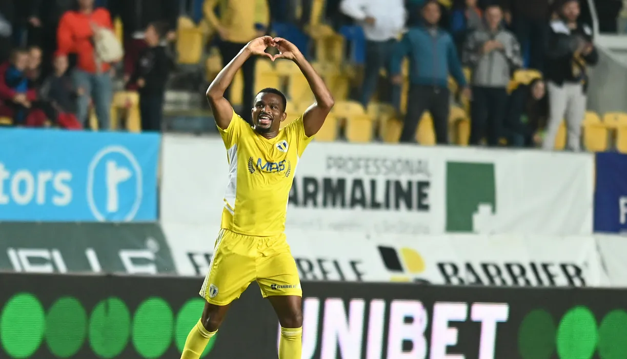 Okechukwu Christian Irobiso se bucura dupa un gol marcat in meciul de fotbal dintre Petrolul Ploiesti si FC Botosani, contand pentru Superliga Superbet, desfasurat pe Stadionul Ilie Oana din Ploiesti, duminica 4 septembrie 2022. © FOTO:Razvan Pasarica/SPORT PICTURES