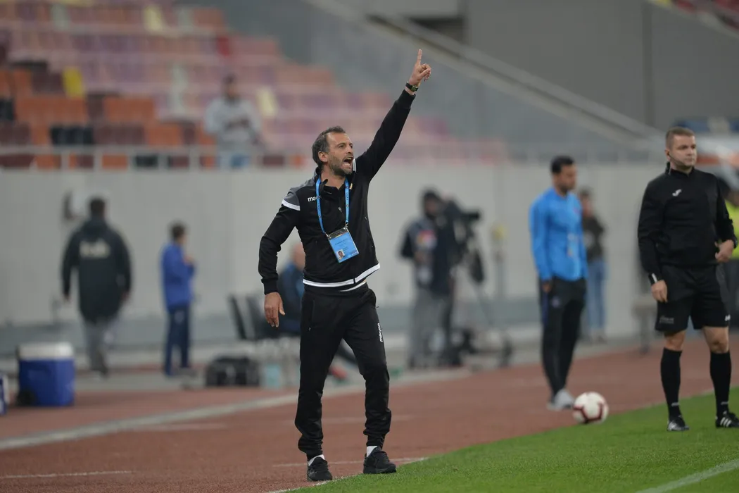 Dinu Todoran , antrenorul echipei FC Voluntari, da indicatii jucatorilor in timpul meciului de fotbal contra echipei FCSB din etapa a XIII-a a Ligii 1, disputat pe Arena Nationala din Bucuresti, duminica, 27 octombrie 2018. ALEXANDRU DOBRE / MEDIAFAX FOTO