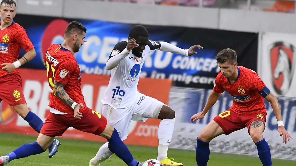 Ovidiu Popescu, Nasser Chamed si Florin Tanase in meciul de fotbal dintre FCSB si Gaz Metan Medias, contand pentru play-off-ul Ligii 1 Casa Pariurilor, disputat fara spectatori pe Arena Nationala din Bucuresti, duminica 21 iunie 2020. © FOTO:Razvan Pasarica/SPORT PICTURES