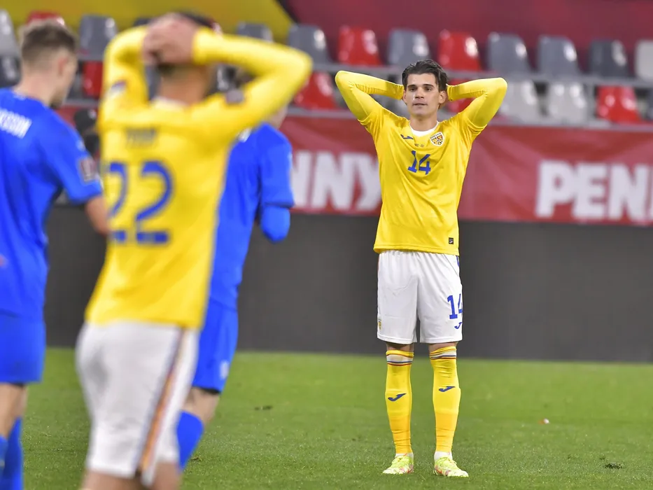 Ianis Hagi isi pune mainile in cap dupa o ratare in meciul de fotbal dintre Romania si Islanda, din cadrul Preliminariilor Campionatului Mondial 2022, desfasurat pe Stadionul Steaua din Bucuresti, joi 11 noiembrie 2021. © FOTO:Razvan Pasarica/SPORT PICTURES