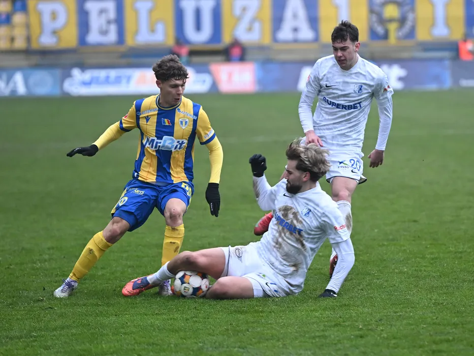 Rares Mihai Pop, Diogo Sa Ramalho si Eduard Gabriel Radaslavescu in meciul de fotbal dintre Petrolul Ploiesti si Farul Constanta, contand pentru Superliga Superbet, desfasurat pe Stadionul Ilie Oana din Ploiesti, duminica 25 ianuarie 2026. © FOTO:Razvan Pasarica/SPORT PICTURES