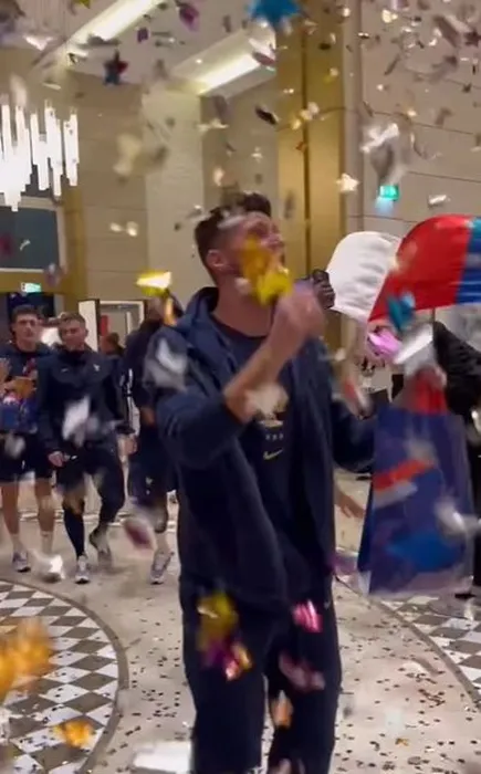 Nebunie la hotelul francezilor! Jucătorii lui Didier Deschamps au fost primiți cu urale și confetti după ce au învins Anglia și s-au calificat în semifinalele Cupei Mondiale din Qatar | VIDEO