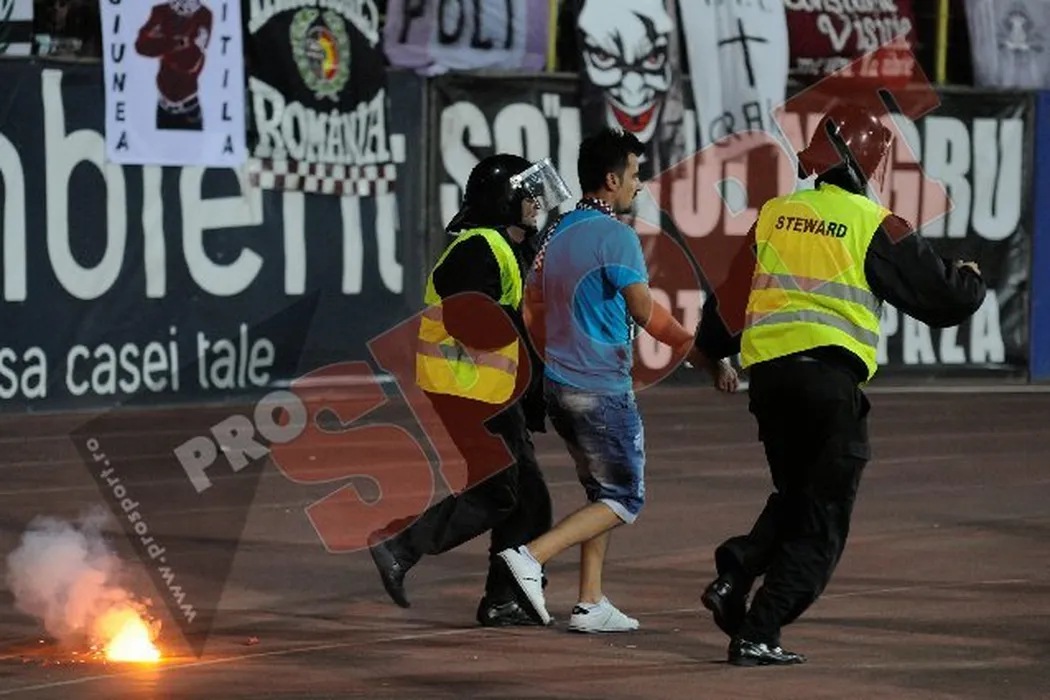 NEBUNIE la Mediaș! Rui Duarte, **aproape de a fi rănit de o petardă aruncată de un fan al „U”! Walter a intrat pe teren și i-a calmat pe fani
