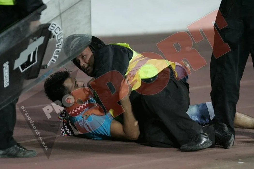 NEBUNIE la Mediaș! Rui Duarte, **aproape de a fi rănit de o petardă aruncată de un fan al „U”! Walter a intrat pe teren și i-a calmat pe fani