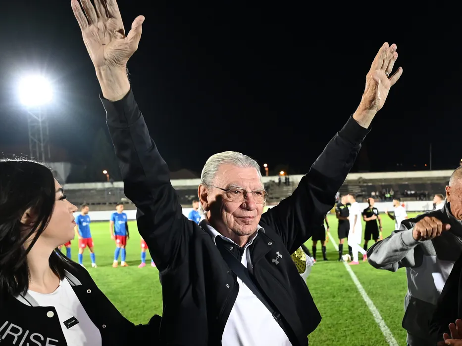 Emerich Jenei premiat inaintea meciului de fotbal dintre FC Bihor Oradea si FCSB, din cadrul Cupei Romaniei Betano, desfasurat pe Stadionul Iuliu Bodola din Oradea, miercuri 27 septembrie 2023. © FOTO:Razvan Pasarica/SPORT PICTURES