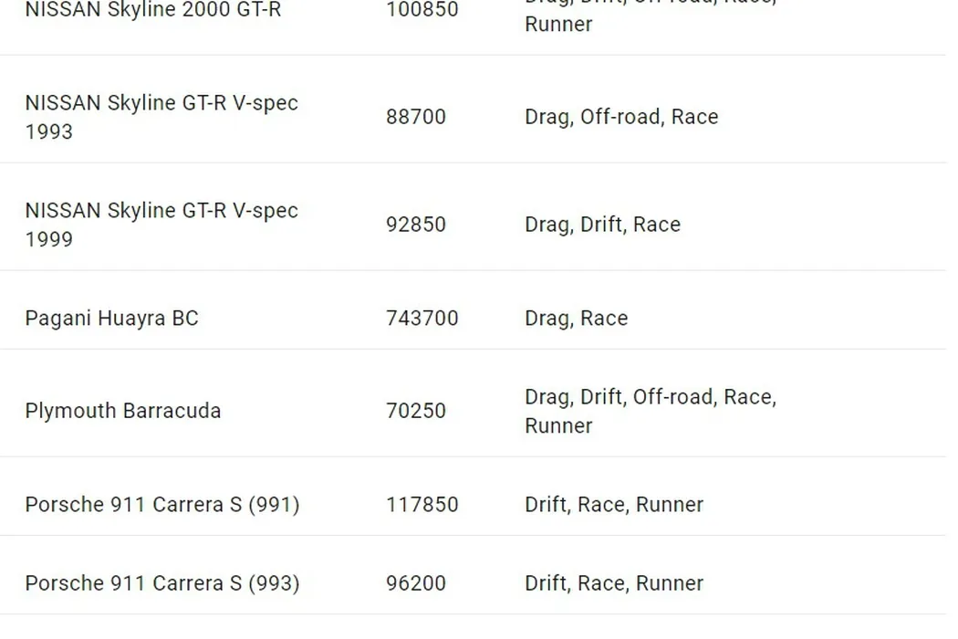Need for Speed Payback – lista completă a mașinilor din joc