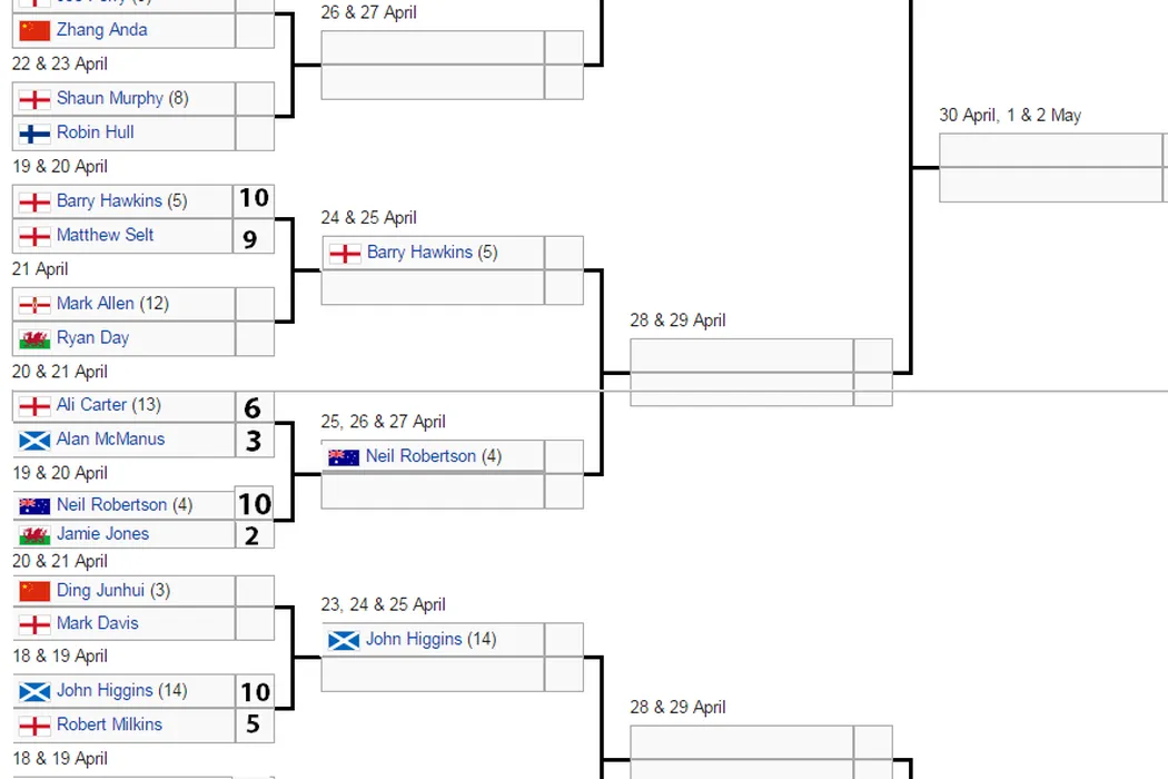 Neil Robertson, cea mai clară victorie de la Mondialul de snooker: 10-2 cu Jamie Jones. Carter a revenit la Crucible, după ce a învins cancerul pulmonar