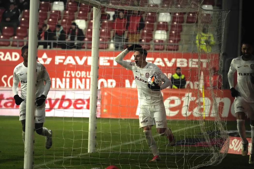 Louis Munteanu se bucura dupa un gol marcat in meciul de fotbal dintre UTA Arad si FC CFR 1907 Cluj, contand pentru Superliga Superbet, desfasurat pe Arena Francisc Neuman din Arad, luni 10 februarie 2025. © FOTO: Alexandra Fechete/SPORT PICTURES