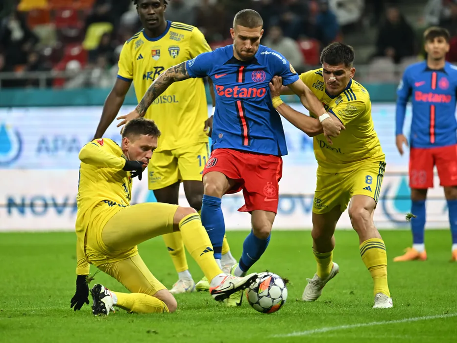 Dmytro Pospielov, George Daniel Bîrligea si Ionut Viorel Coada in meciul de fotbal dintre FCSB si Unirea Slobozia, din cadrul Superligii Superbet, desfasurat pe Arena Nationala din Bucuresti, duminica 24 noiembrie 2024. © FOTO:Razvan Pasarica/SPORT PICTURES