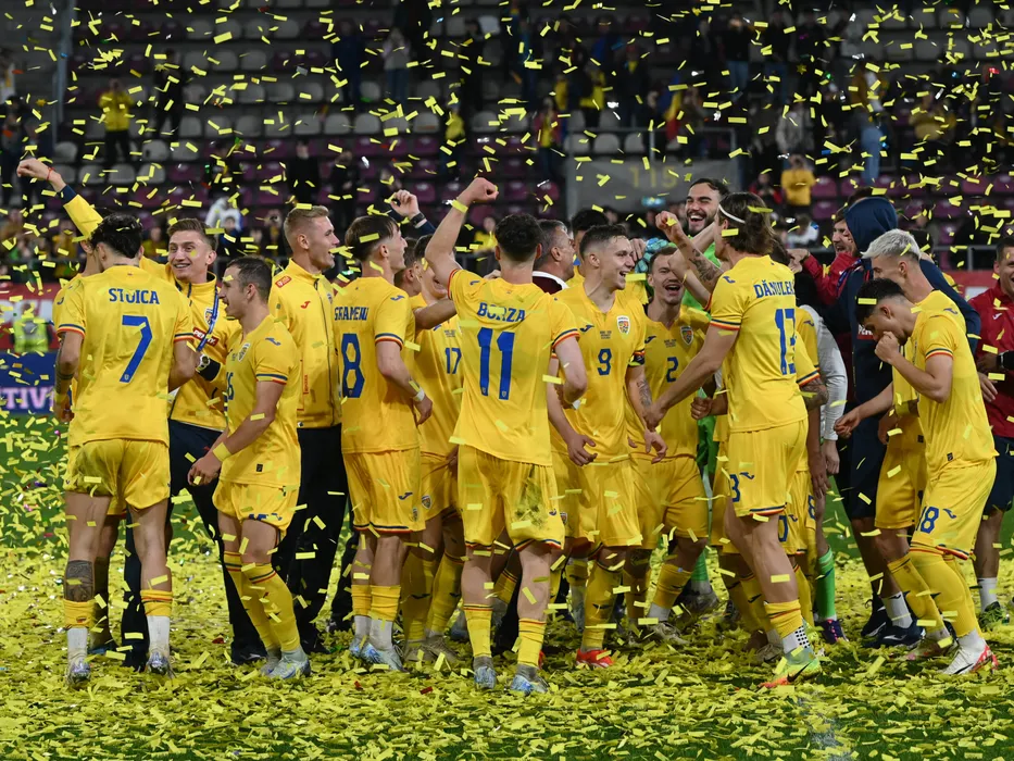 Fotbalistii romani printre care Robert Silaghi, Constantin Grameni, Louis Munteanu si Alexandru Pantea se bucura dupa meciul de fotbal dintre Romania U21 si Elvetia U21, contand pentru Preliminariile UEFA EURO 2025, desfasurat pe Superbet Arena Giulesti din Bucuresti, marti 15 octombrie 2024. © FOTO:Razvan Pasarica/SPORT PICTURES