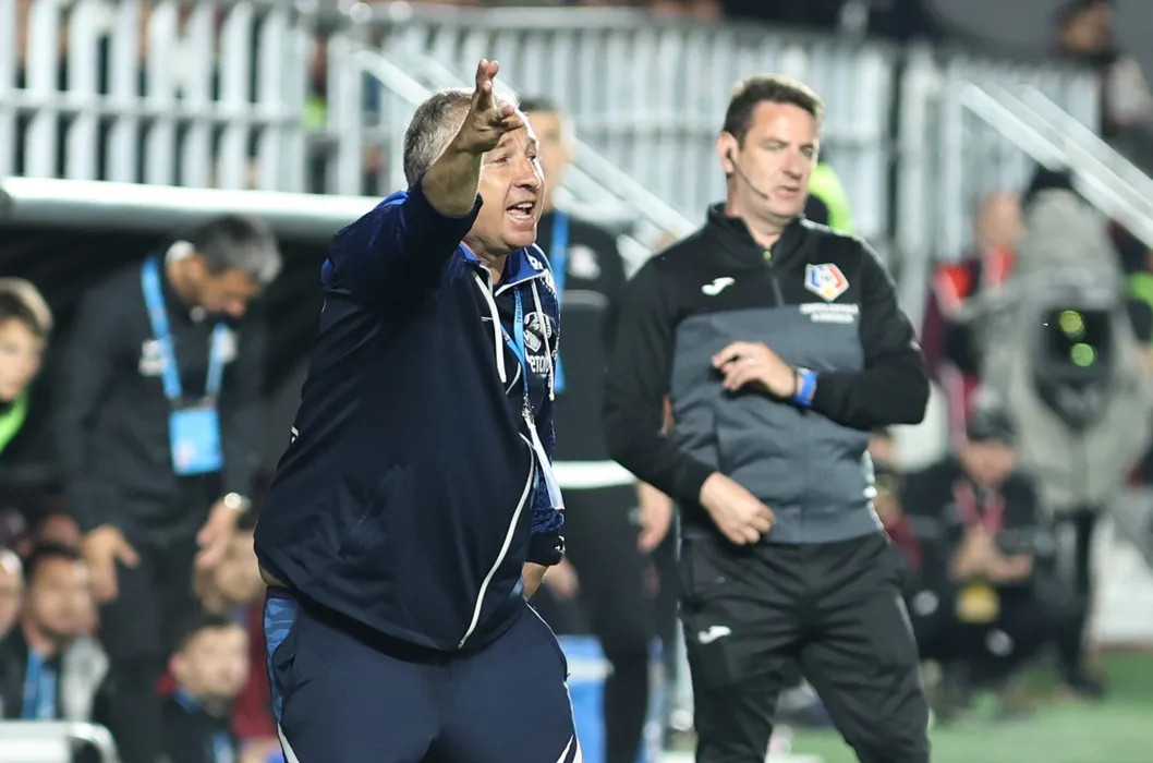 Dan Petrescu, antrenorul echipei CFR Cluj, gesticuleaza in timpul meciului de fotbal contra formatiei Rapid din etapa a VI-a a play-off-ului Superligii, disputat pe stadionul Rapid-Giulesti din Bucuresti, luni, 1 mai 2023. GEORGE FILIP / MEDIAFAX FOTO