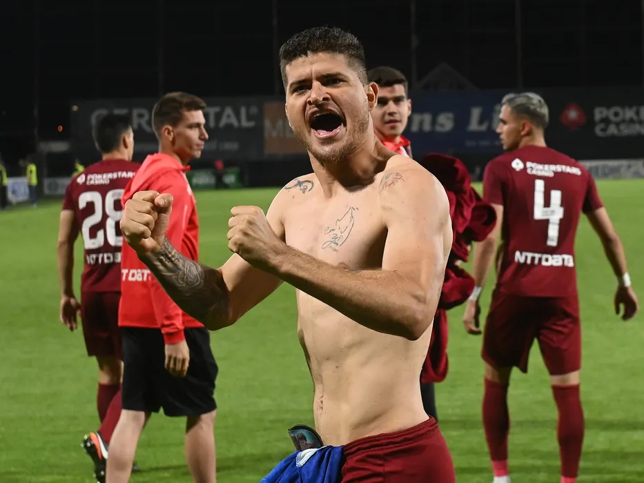 Jefferson Yuri De Sousa Matias aplauda galeria dupa meciul de fotbal dintre CFR Cluj si FC U Craiova, barajul din cadrul Superligii Superbet pentru UEFA Conference League, desfasurat pe Stadionul Dr. Constantin Radulescu din Cluj Napoca, joi 1 iunie 2023. © FOTO:Razvan Pasarica/SPORT PICTURES