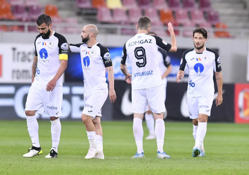 Marius Marcel Constantin si Gabriel Rodrigues De Moura in meciul de fotbal dintre FCSB si Gaz Metan Medias, contand pentru play-off-ul Ligii 1 Casa Pariurilor, disputat fara spectatori pe Arena Nationala din Bucuresti, duminica 21 iunie 2020. © FOTO:Razvan Pasarica/SPORT PICTURES