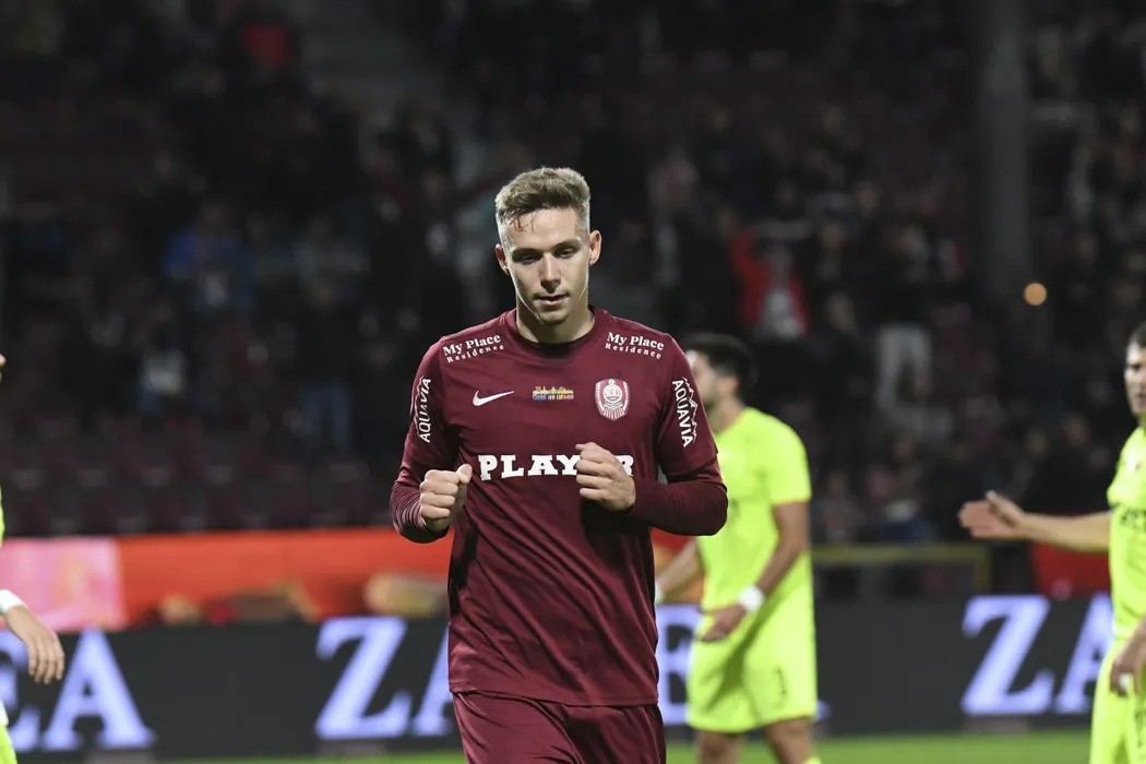 Louis Munteanu după un gol marcat în meciul de fotbal dintre FC CFR 1907 Cluj si Poli Iași, contând pentru Superliga Superbet, desfășurat pe Stadionul Dr.Constantin Rădulescu din Cluj-Napoca, sâmbătă 5 octombrie 2024. © FOTO: Flaviu BUBOI/SPORT PICTURES