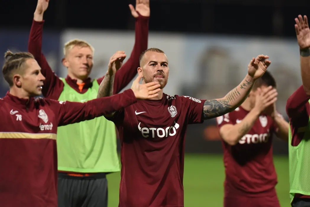 Jucatorii formatiei CFR Cluj reactioneaza la finalul meciului de fotbal contra echipei FCSB din etapa a VII-a a Ligii 1, disputat pe stadionul Dr. Constantin Radulescu, duminica, 29 august 2021. DAN HORIA TAUTAN / MEDIAFAX FOTO