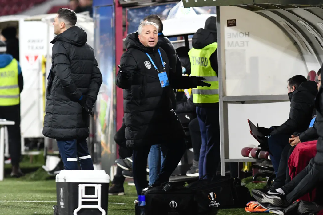 Dan Petrescu, antrenorul echipei CFR Cluj, urmareste meciul de fotbal contra formatiei UTA Arad din etapa a XXV- a a Ligii 1, disputat pe stadionul Dr. Constantin Radulescu din Cluj-Napoca, marti, 8 februarie 2022. FLAVIU BUBOI / MEDIAFAX FOTO