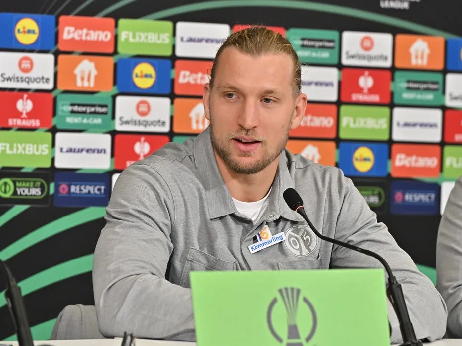 Robin Zentner participa la conferinta de presa de dinaintea meciului cu Universitatea Craiova, contand pentru Conference League , desfasurata la Stadionul Ion Oblemenco din Craiova, miercuri 26 noiembrie 2025. © FOTO:Remus Badea/SPORT PICTURES