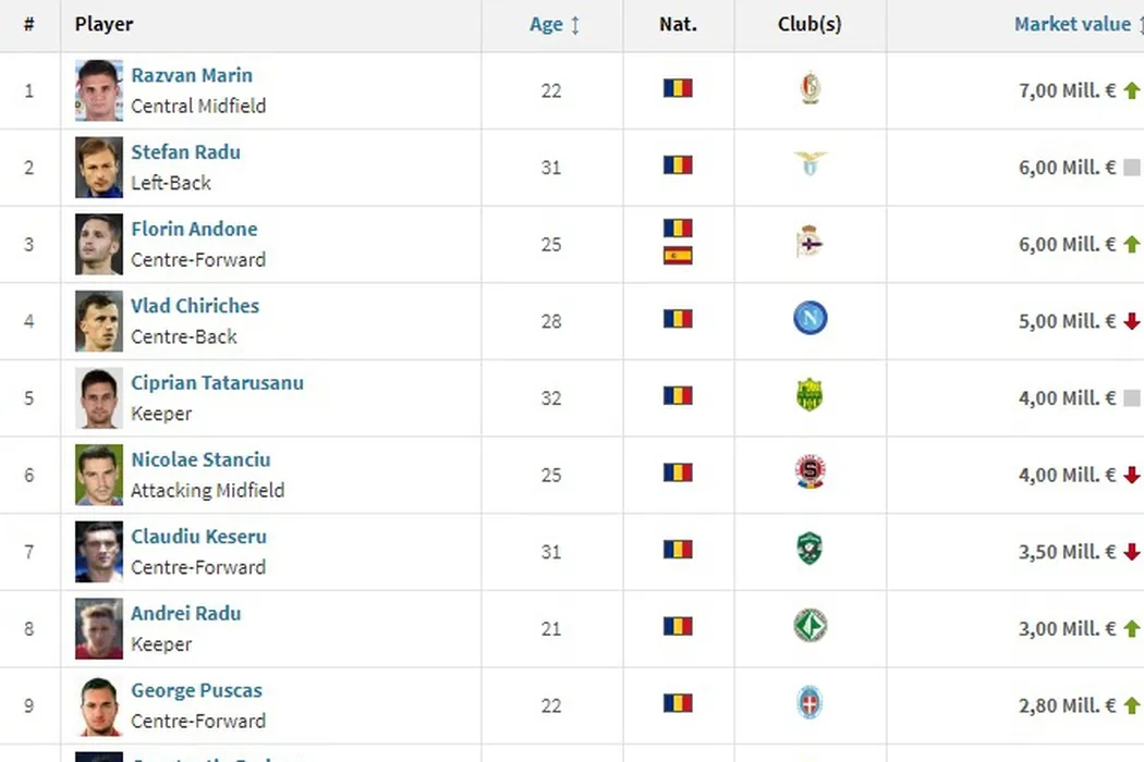 „New entry” în topul celor mai bine cotați fotbaliști români. Nu a jucat niciodată în Liga 1, dar cota i-a „explodat” după ultimul sezon. Jucătorul de 21 de ani pus peste Budescu sau Mitriță și imediat sub Keșeru și Stanciu