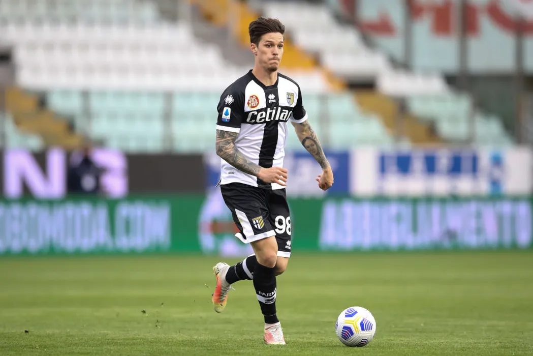 PARMA, ITALY - APRIL 10: Dennis Man of Parma Calcio during the Serie A match between Parma Calcio and AC Milan at Stadio Ennio Tardini on April 10, 2021 in Parma, Italy. (Photo by Jonathan Moscrop/Getty Images)