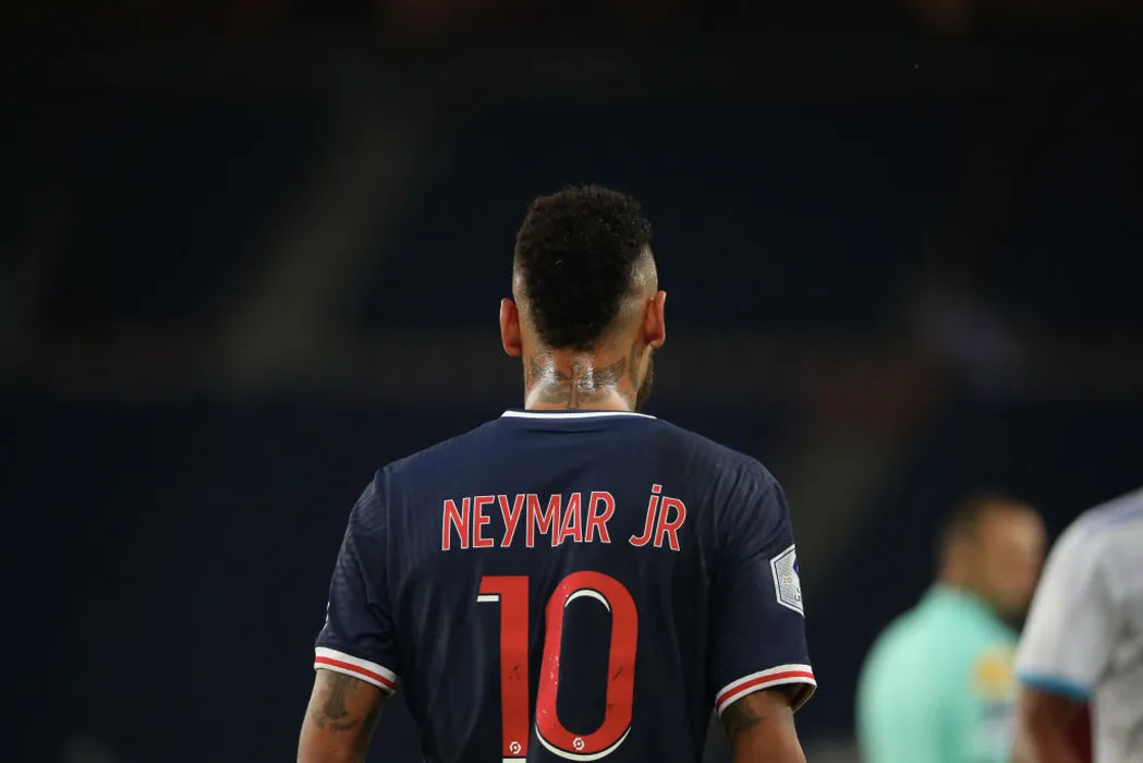 PARIS, FRANCE-SEPTEMBER 13: Neymar Jr of Paris saint-Germain reacts during the Ligue 1 match between Paris-Germain (PSG) and Olympique Marseille (OM) at Parc des Princes on September 13, 2020 in Paris, France. (Photo by Xavier Laine/Getty Images)