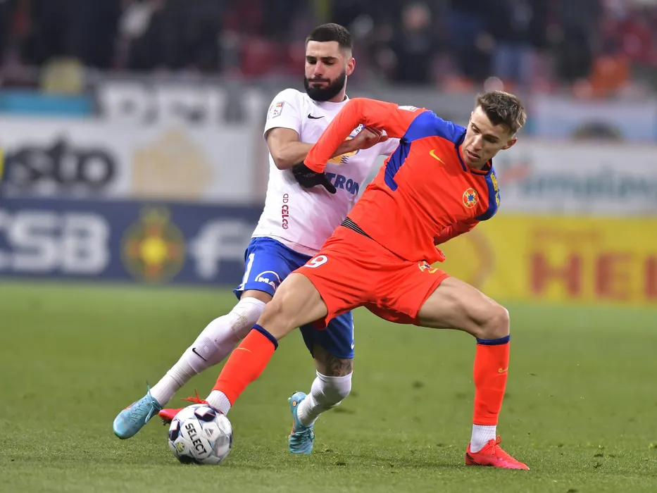 Radu Stefanita Boboc si Octavian George Popescu in meciul de fotbal dintre FCSB si Farul Constanta, contand pentru Play-off-ul Ligii 1 Casa Pariurilor, desfasurat pe Arena Nationala din Bucuresti, luni 14 martie 2022. © FOTO:Razvan Pasarica/SPORT PICTURES