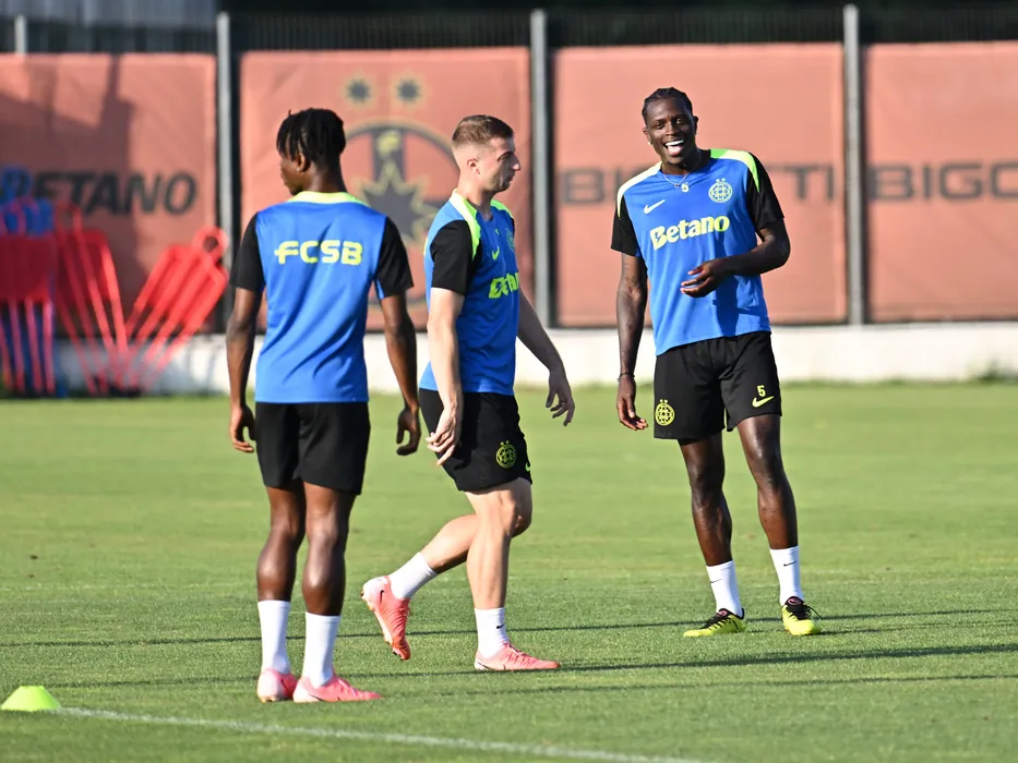 Iliuta Daniel Popa si Joyskim Aurelien Dawa Tchakonte la antrenamentul oficial al celor de la FCSB de dinaintea meciului impotriva celor de la FC Virtus, din cadrul preliminariilor Champions League, desfasurat la Baza de antrenament FCSB din Berceni, luni 15 iulie 2024. © FOTO:Razvan Pasarica/SPORT PICTURES