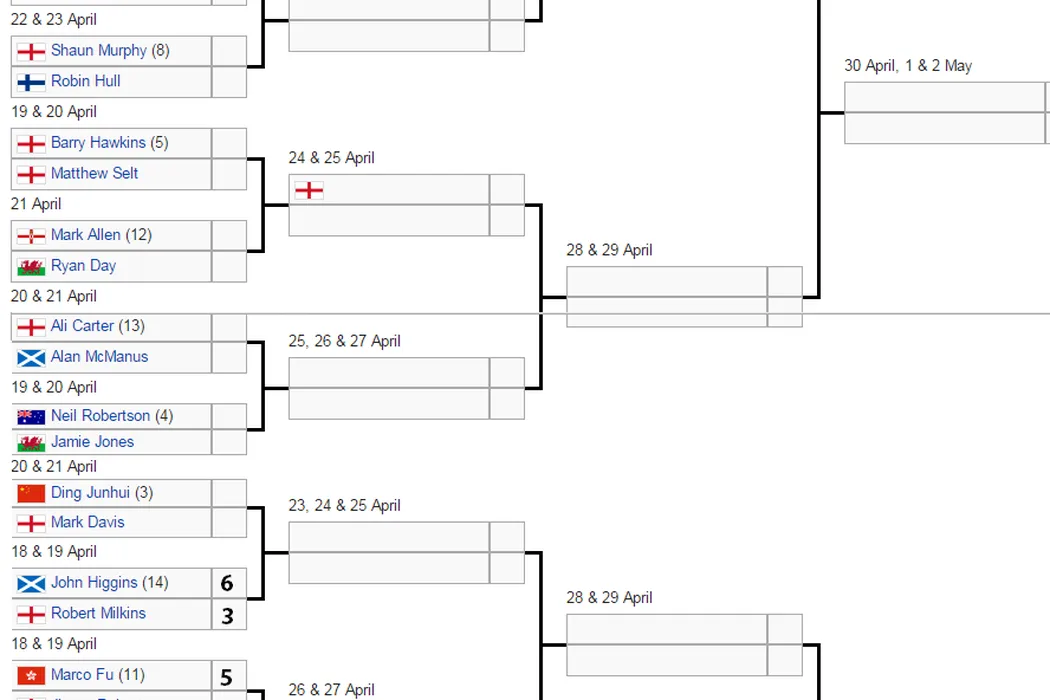 Nicio surpriză majoră în debutul Mondialului de snooker. Selby conduce cu 6-3, după prima zi. McGill domină duelul scoțienilor cu Maguire. Un singur break de peste 100 de puncte