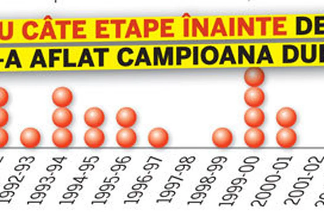 Niciodată după ’89 campioana nu s-a aflat cu mai mult de 4 etape înainte de final!** Dovada că Steaua și Dinamo mai pot spera la titlu doar dacă bat totul