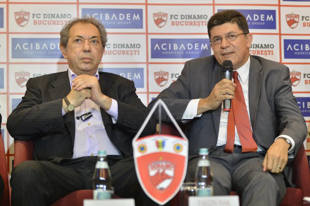 Nicolae Badea (S), presedintele Consiliului de Administratie al clubului Dinamo si Yalcin Nak (D), directorul General Adjunct al Acibadem, participa la o conferinta de presa prilejuita de semnarea unui contract intre clubul Dinamo si Acibadem Hospitals Group, in Bucuresti, miercuri, 25 iunie 2012. BOGDAN IORDACHE / MEDIAFAX FOTO