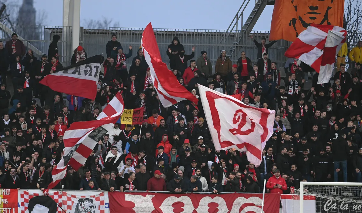 Galeria dinamovista prezenta la meciul de fotbal dintre Dinamo Bucuresti si Unirea Constanta, contand pentru Liga 2, desfasurat pe Stadionul National Arcul de Triumf din Bucuresti, luni 27 februarie 2023. © FOTO:Razvan Pasarica/SPORT PICTURES