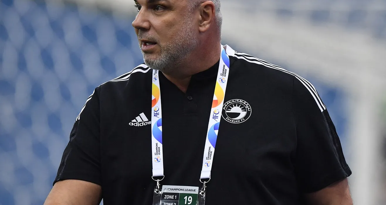 Sharjah's Romanian coach Cosmin Olaroiu looks on during the AFC Champions League group A match between Qatar's Al-Rayyan and UAE's Sharjah on April 19, 2022, at the King Fahd stadium in the capital Riyadh.,Image: 684342524, License: Rights-managed, Restrictions: , Model Release: no