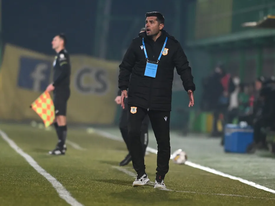 Nicolae Dica reactioneaza in meciul de fotbal dintre CS Mioveni si Rapid Bucuresti, contand pentru Superliga Superbet, desfasurat pe Stadionul Orasenesc din Mioveni, 17 februarie 2023. © FOTO:Razvan Pasarica/SPORT PICTURES