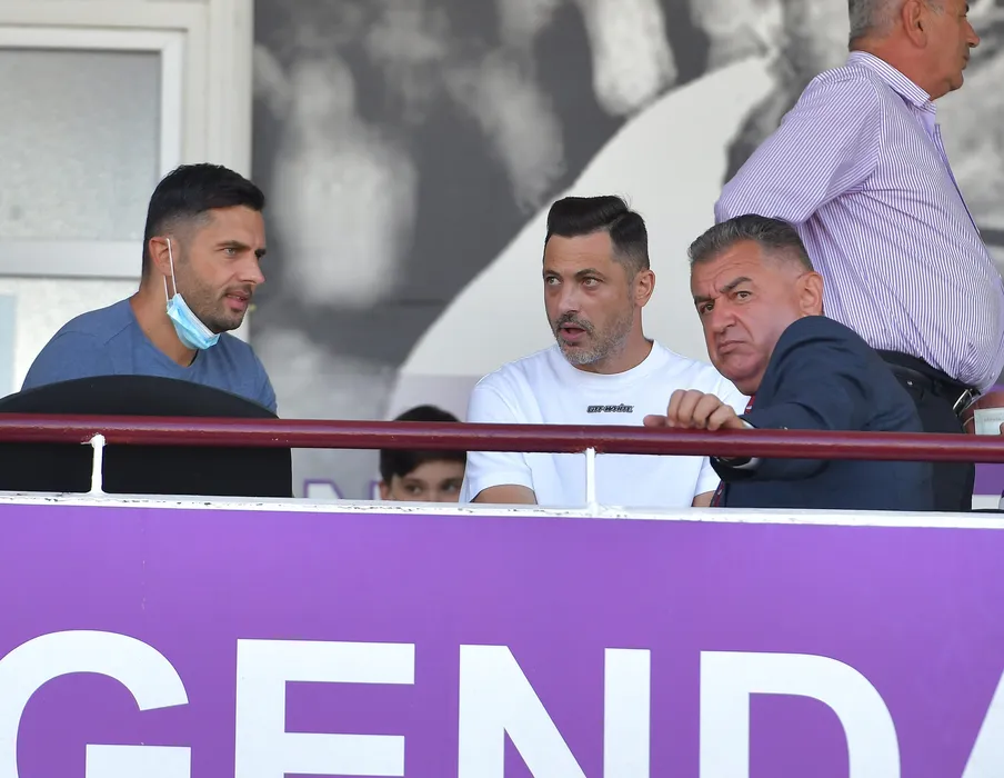 Nicolae Dica si Mirel Radoi asista din tribuna la meciul de fotbal dintre FC Arges si FC U Craiova, contand pentru Liga 1 Casa Pariurilor, desfasurat pe Stadionul Nicolae Dobrin din Pitesti, sambata 11 septembrie 2021. © FOTO:Razvan Pasarica/SPORT PICTURES