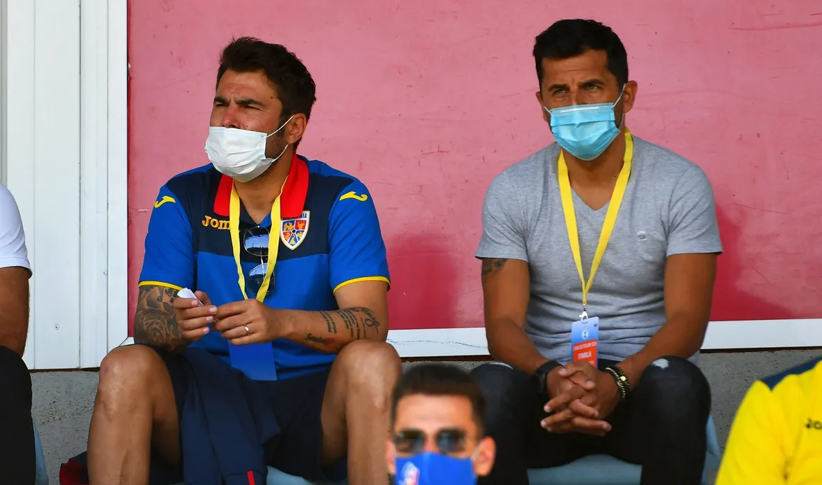 Adrian Mutu si Nicolae Dica asista la meciul de fotbal dintre FC Viitorul U19 si Dinamo Bucuresti U19, contand pentru finala Ligii Elitelor U19, disputat fara spectatori pe Stadionul central din cadrul Centrului National de Fotbal de la Mogosoaia, luni 3 august 2020. © FOTO:Razvan Pasarica/SPORT PICTURES