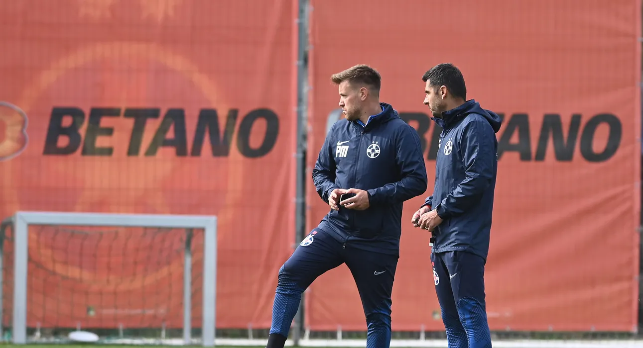 Mihai Pintilii si Nicolae Dica la antrenamentul oficial al celor de la FCSB de dinaintea meciului impotriva Silkeborg IF, din cadrul grupelor UEFA Europa Conference League, desfasurat la Baza de antrenament FCSB din Berceni, miercuri 12 octombrie 2022. © FOTO:Razvan Pasarica/SPORT PICTURES