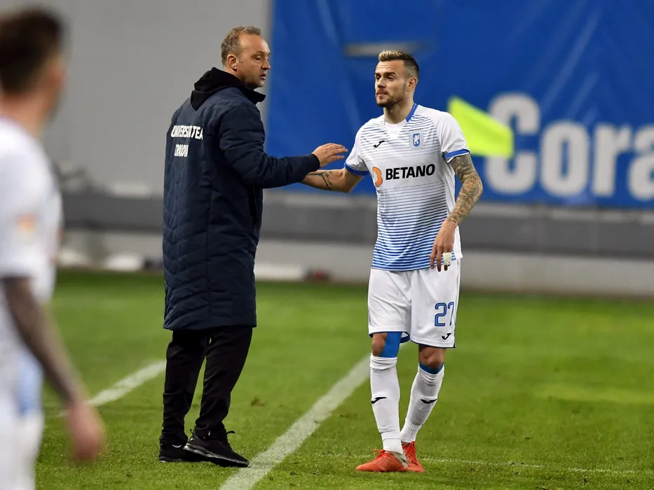 Corneliu Papura si Ivan Martic in meciul de fotbal dintre Universitatea Craiova si Gaz Metan Medias, contand pentru Liga 1 Casa Pariurilor, disputat pe Stadionul Ion Oblemenco din Craiova, vineri 31 ianuarie 2019. © FOTO:Razvan Pasarica/SPORT PICTURES