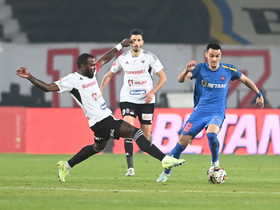 Romario Santos Pires si Adrian Gheorghe Sut in meciul de fotbal dintre Universitatea Cluj si FCSB, contand pentru Superliga Superbet, desfasurat pe Cluj Arena din Cluj Napoca, duminica 31 octombrie 2022. © FOTO:Razvan Pasarica/SPORT PICTURES