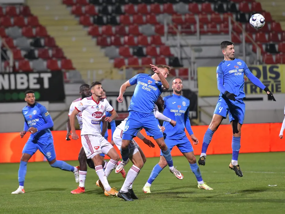 Nicolae Ionut Paun, Denis Ventura si Amir Bilali in meciul de fotbal dintre Academica Clinceni si Sepsi OSK Sfantu Gheorghe, contand pentru Liga 1 Casa Pariurilor, desfasurat pe Stadionul Marin Anastasovici din Giurgiu, vineri 19 noiembrie 2021. © FOTO:Razvan Pasarica/SPORT PICTURES