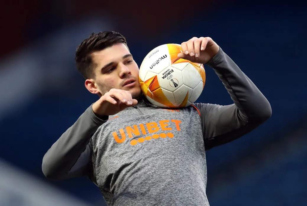 Rangers' Ianis Hagi warming up before the UEFA Europa League match at the Ibrox Stadium, Glasgow. Picture date: Thursday February 25, 2021.,Image: 593473111, License: Rights-managed, Restrictions: Editorial use only, no commercial use without prior consent from rights holder., Model Release: no
